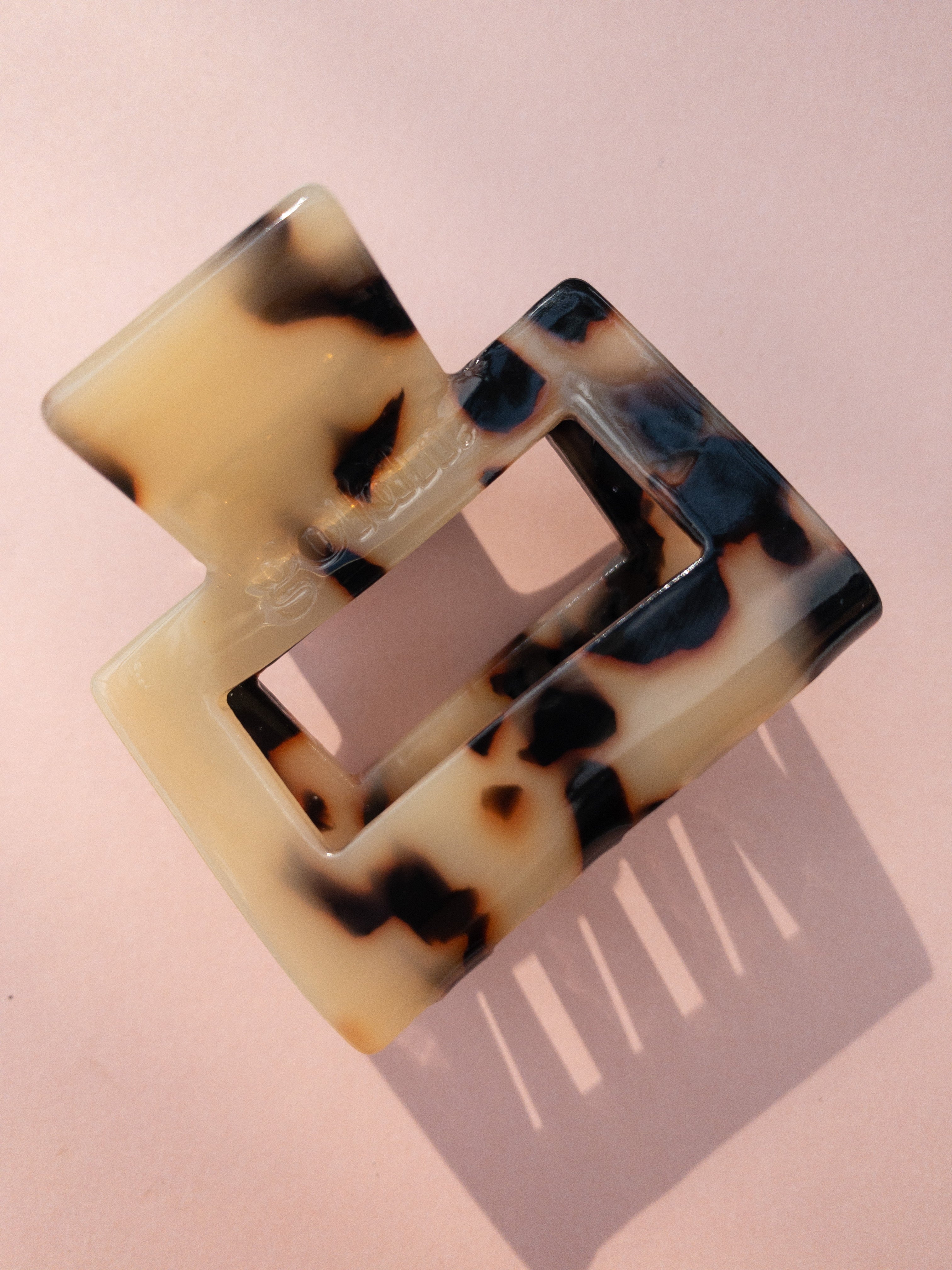 Measuring just 5cm x 5cm, this compact yet sturdy clip is ideal for securing small sections of hair, half-up styles, or adding a decorative touch to any updo. Made from high-quality acetate, it’s lightweight yet durable enough for daily wear.